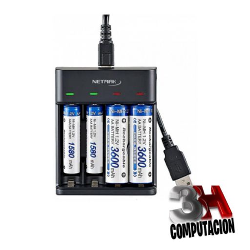 Cargador pilas USB 4U AA/AAA NETMAK NMCH4
